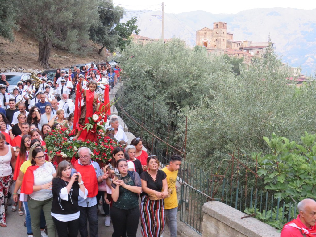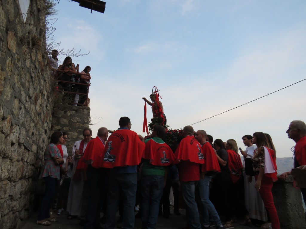 Nonostante con orgoglio possa sentirmi a casa li, non avevo mai assistito alla festa del Santo Patrono, durante la quale la statua in gesso, da poco restaurata, sfila per le strette vie del borgo fino a raggiungere il belvedere del Calvario per poi fare ritorno nella chiesa principale del paese.