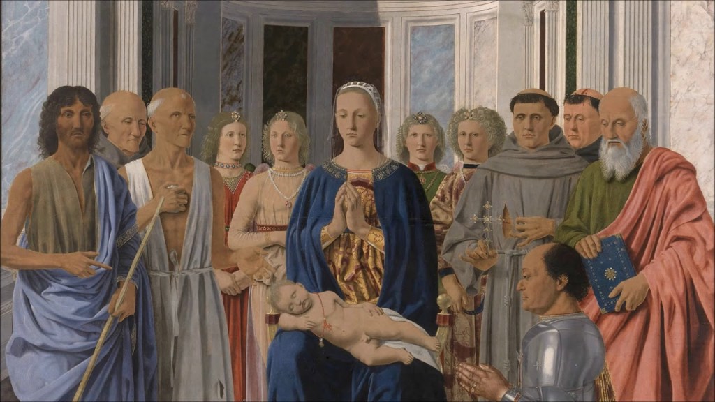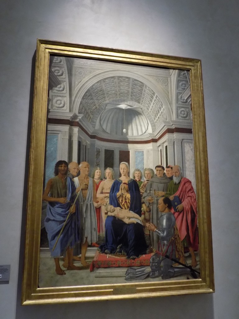 Tra le tante opere di firme di primo piano presenti, Gentile da Fabriano, Mantegna, Raffaello ( che proverò a raccontarvi più in la), sicuramente il capolavoro che più mi ha colpito è la cosidetta “Pala di Brera” di Piero della Francesca.